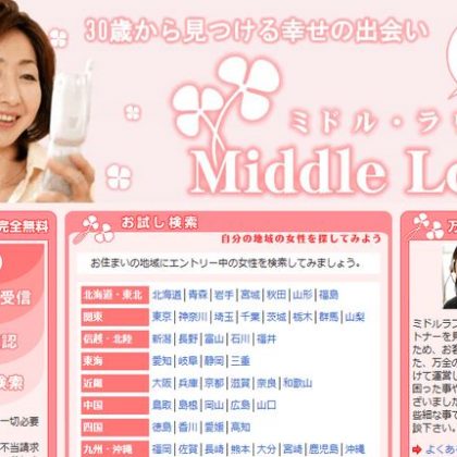 人妻・熟女系 ミドルラヴ 平均年齢30代以上がウリの人妻・熟女系出会いサイト「ミドルラヴ」は、サイト名からも分かるように熟年女性との出会いを中心とした出会いコミュニティだ。 元々は熟年男性と熟年女性との出会…〔続きを読む〕
