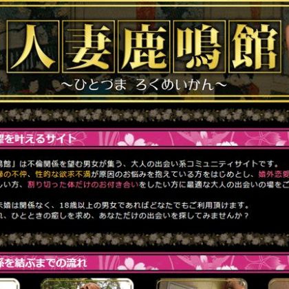 人妻・熟女系 人妻鹿鳴館 ルックス、性欲、経済力と三拍子揃った高級セレブ妻たちが、活きの良い男性パートナーを常時募集しているのが人妻・熟女系出会いサイト「人妻鹿鳴館」だ。 文明開化の象徴だった本家鹿鳴館と言…〔続きを読む〕